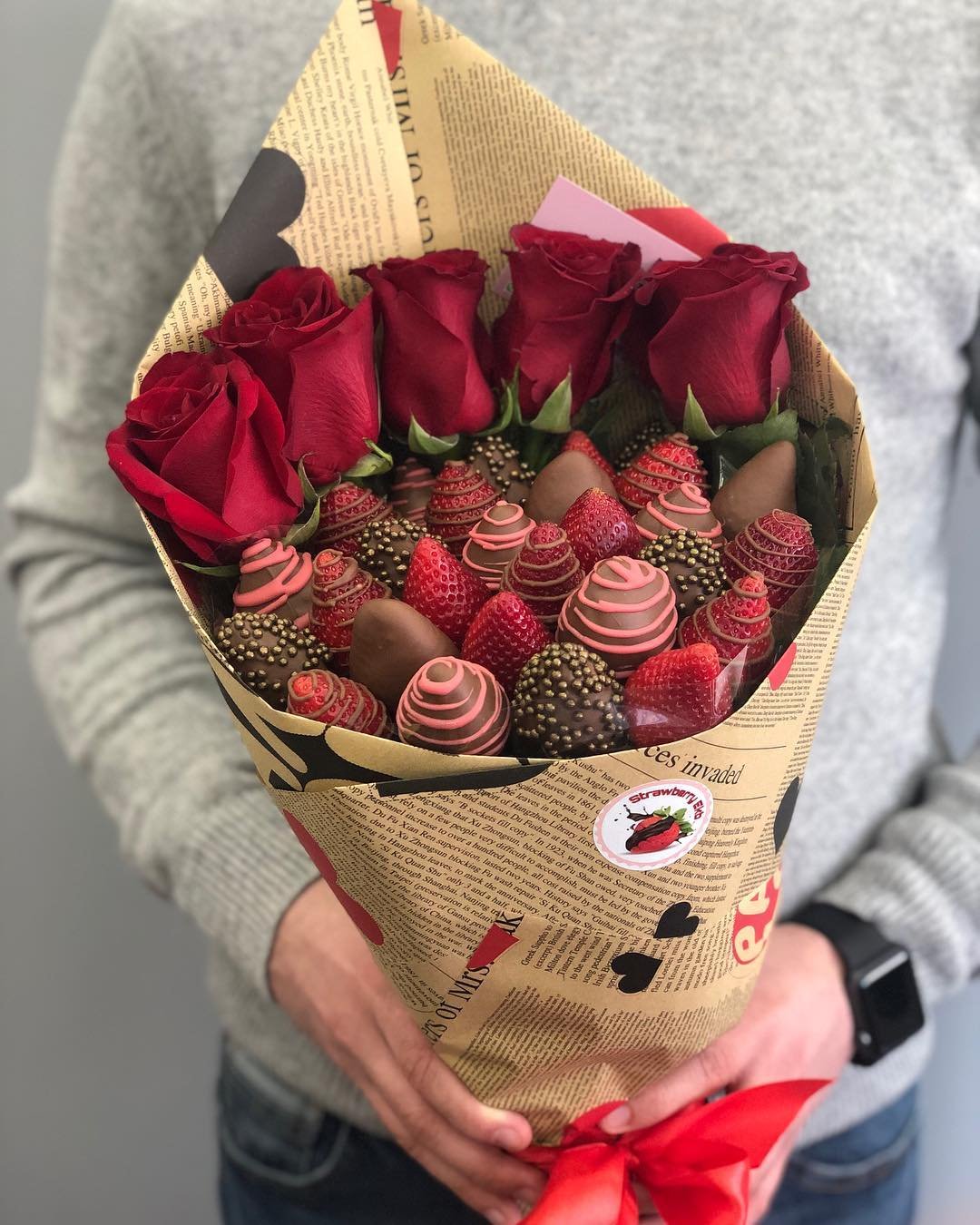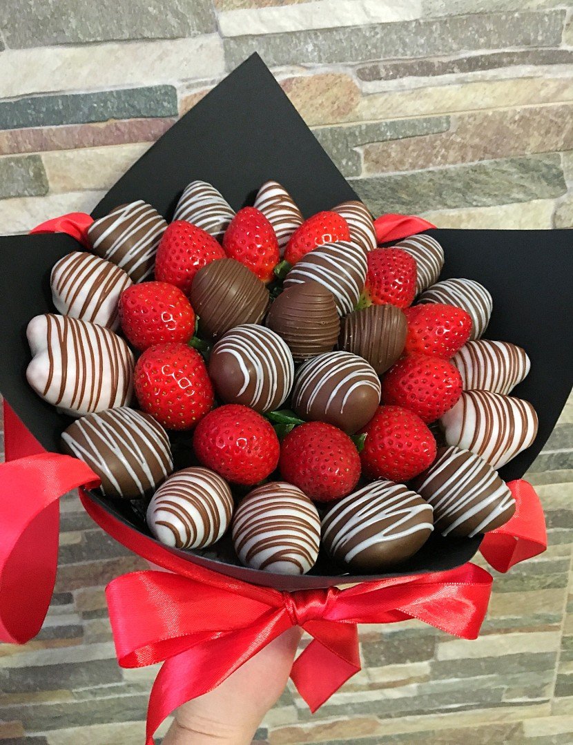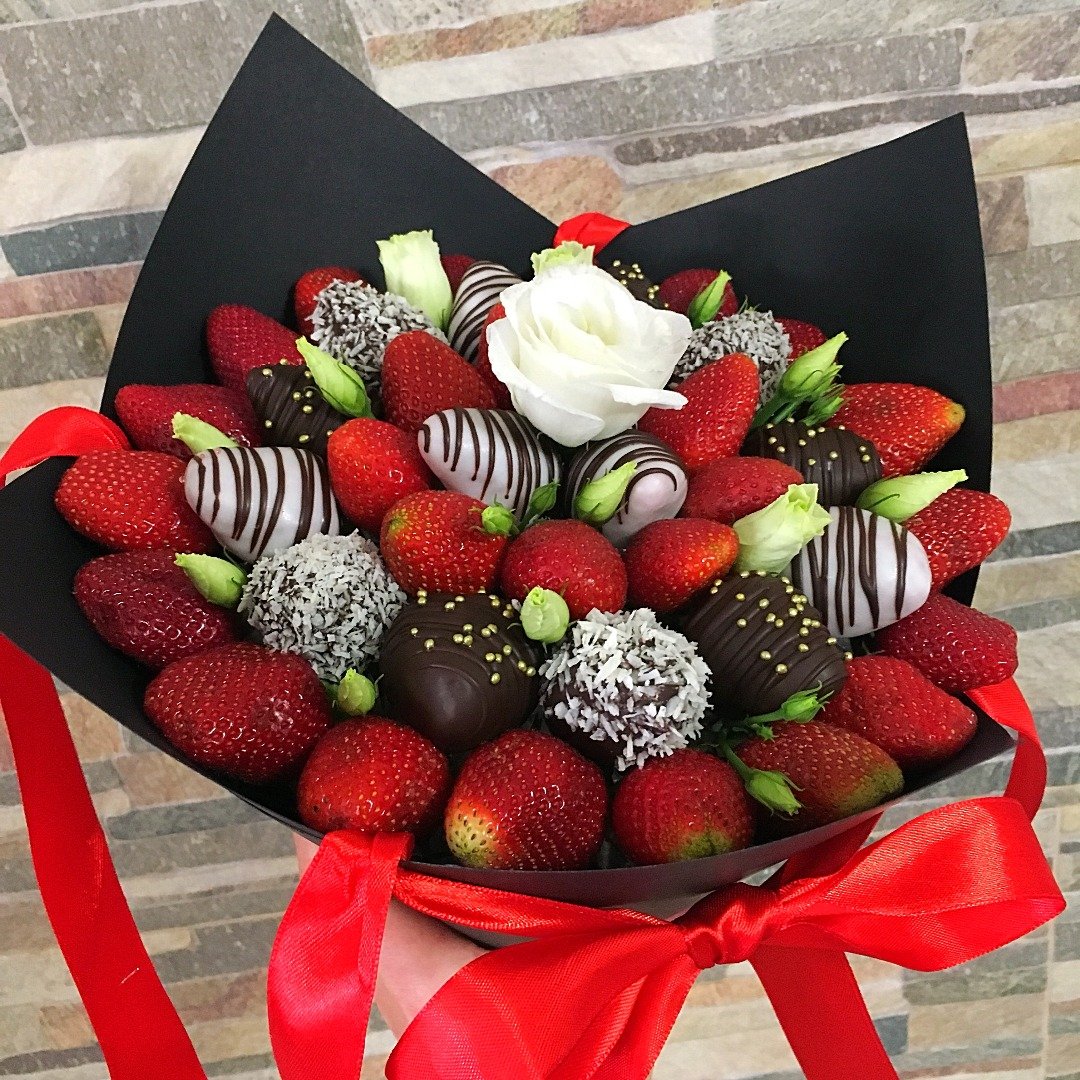 5. Ну и конечно, самой топовой и распространённой композицией является букет из свежей КЛУБНИКИ в шоколаде